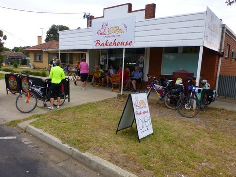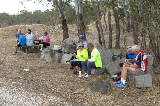 This was to be our longest ride, which was on the Dunolly/Havelock Gold Rush Trail – 54km. The tracks were good and we soon reached our lunch stop at Dunolly bakery. However after lunch it became increasingly hot, so much so we were all quite glad to reach our camp site and relax out of the heat.