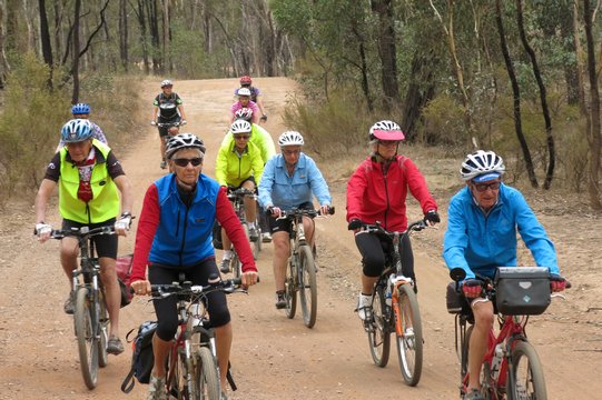 Shortly before ‘happy’ hour on Saturday all the 13 cyclists had arrived from Adelaide for the start of almost a week cycling around the woodland trails of the Central Goldfields of Victoria. We were to find out that there were about 14 such trails ranging from 11km to the 80km epic. As well as those trails, we were informed that the many minor roads in the area were well surfaced with few vehicles using them. The group consisted of Alan (our leader and organizer), Mary, Sue, David, Vickie, Gordon, Bev, Lee, Steve, the 2 Helens, Norm and Ann.